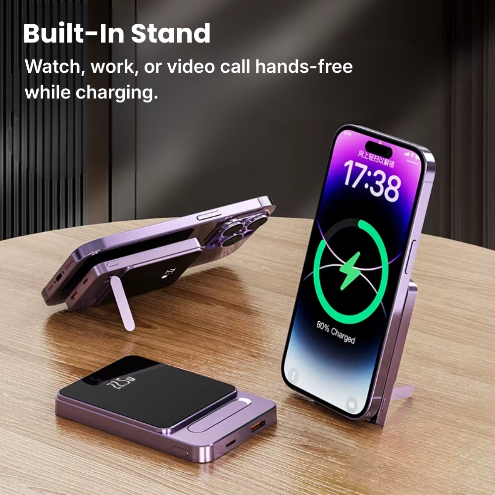 The built-in stand lets you charge while streaming movies, joining video calls, or attending meetings—convenient and stable anywhere.