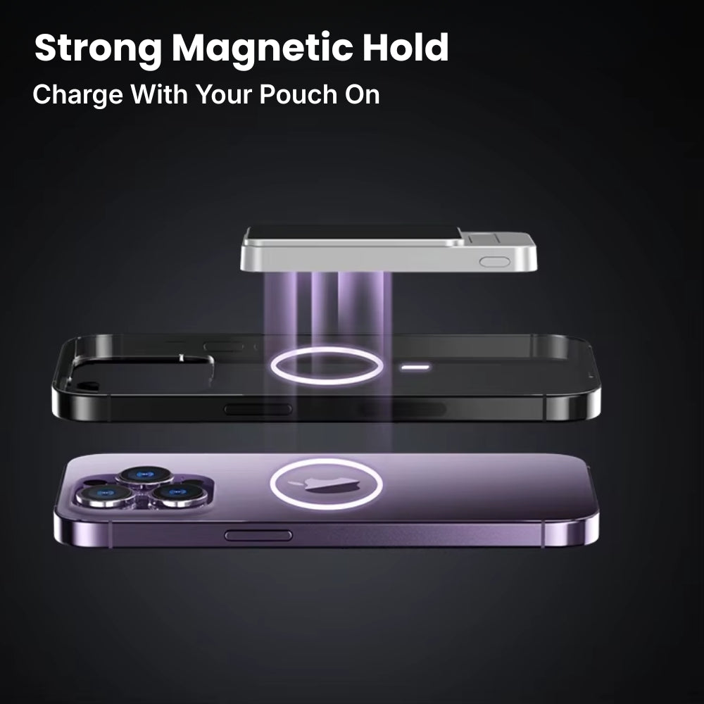 Its strong magnetic alignment snaps securely onto your phone, keeping it perfectly positioned for stable and efficient charging—no cables, no slipping, no interruptions. Whether you’re on the move or relaxing, SnapVolt Pro stays locked in place while you use your device.