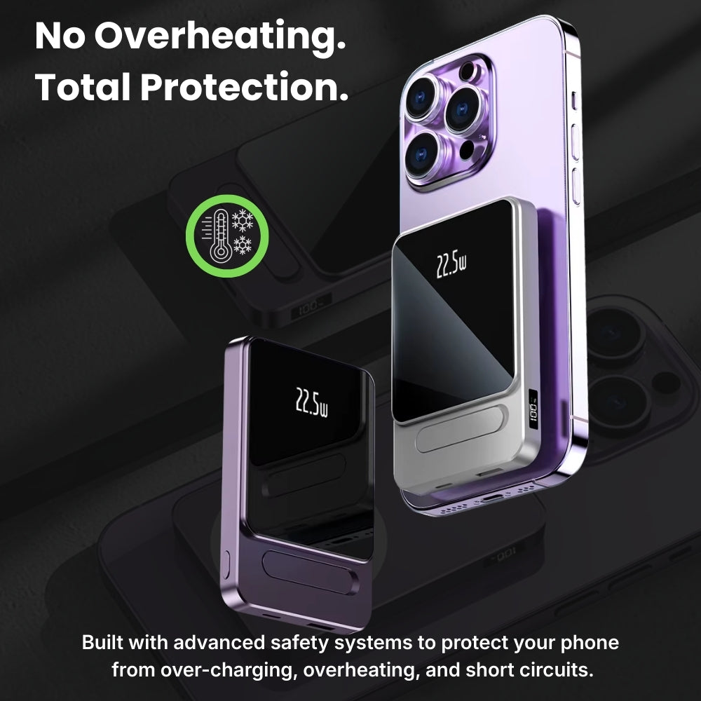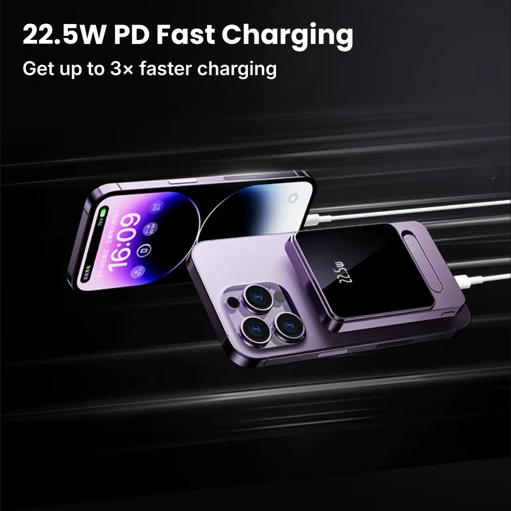 Meet the magnetic power bank built for speed, safety, and everyday convenience. SnapVolt Pro delivers up to 22.5W PD fast charging with smooth magnetic wireless power, all in a slim, pocket-friendly design made for modern iPhone users.