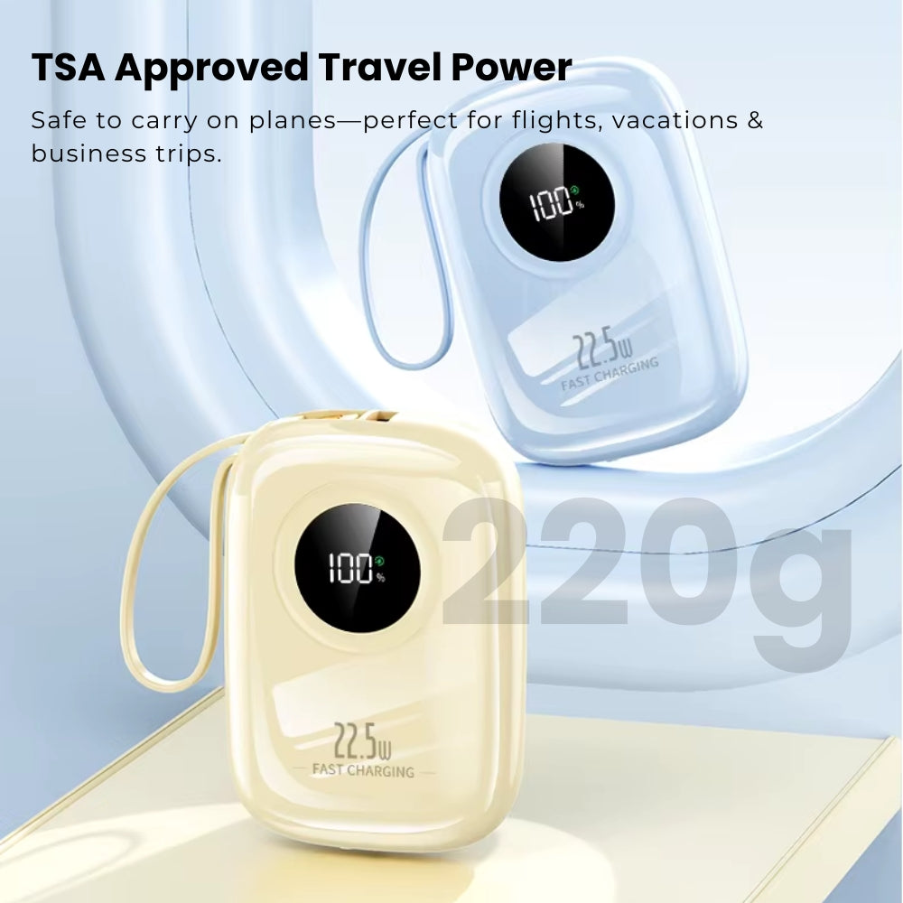 Designed for hassle-free travel with a safe 10000mAh capacity that’s allowed in carry-on luggage worldwide—take it through airport security with confidence and charge during flights, layovers, and long trips.